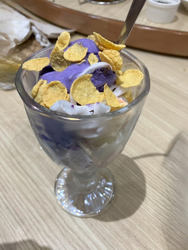 ハロハロとは、タガログ語で混ぜこぜという意味らしいです。私は、満腹と甘すぎたせいで完食出来ませんでしたが。